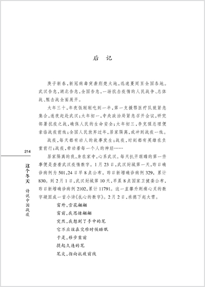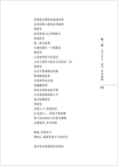 内容介绍:本书为诗歌集,由89首现代诗歌组成。全书分为“窗外,雪花翩翩”“山河,呜咽呐喊”“夜空,星光闪闪”三章。作者从不同角度,以感人肺腑的笔触记录了身边发生的一些故事。赞颂了那些在平凡岗位上的无名英雄。他(她)们迎难而上,为了更多人的平安默默奉献。整部作品深沉悲壮,饱含深情。
